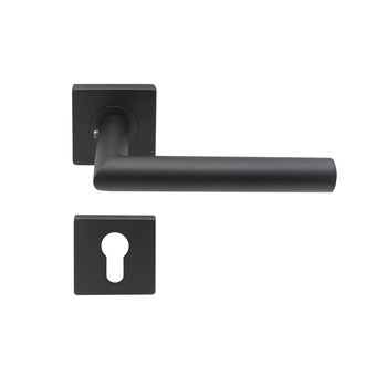 דלת צינור מרובע מודרני על נירוסטה Rosettes פנים ידית פנים בשחור עבור חדר אמבטיה פנימי